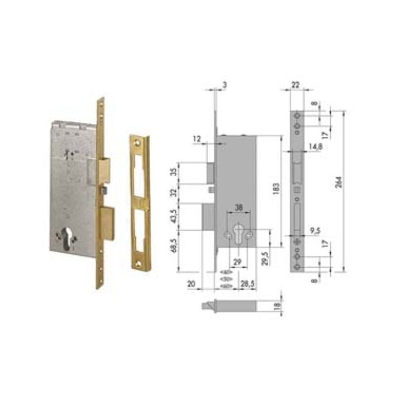 Mm.40 (12011400) scatola in acciaio con rivestimento in zinco, frontale e contropiastra in ottone satinato, 2 mandate, catenaccio con scrocco separato reversibile, scrocco autobloccante in acciaio nichelato elettrificato, tensione 12v ac, dotazione contatti elettrici, funzionante con cilindro sagomato non compreso Categoria merceologica: Elettroserrature e accessori - Sicurezza - Serrature elettriche per portoncino da infilare