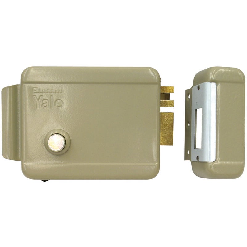 Elettroserratura con cilindro a pompa. Scrocco, 3 punti di chiusura, completa di aste e accessori, entrata mm. 65, 3 chiavi. Tensione 8/12 V ca.