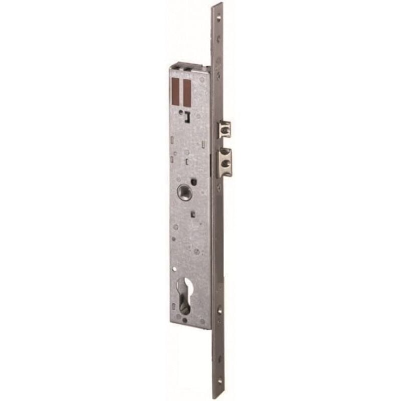 Cisa elettroserratura per montanti da infilare a cilindro +s. e.25 - f.22 Elettroserratura da infilare a cilindro. Scrocco e pistone regolabili, zincata, frontale in acciaio inox, coppia borchie in nylon, scatole mm. 40/45/50x230, tensione 12 V ca. Articolo produttore: 116205250