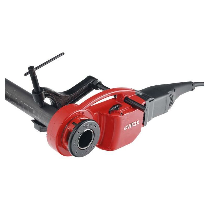 Dettagli: Doppio senso di rotazione. Dispositivo di inversione meccanica per una maggiore durata del motore. Adattatore per teste ottagonali da 1/8 a 1,1/4 con esclusivo sistema di bloccaggio: tenuta sicura della testa durante la filettatura. Velocità di rotazione: 26 rpm in entrambe le direzioni. I tubi devono essere conformi alle norme EN 10255 S e EN 10255 W (ex NFA 49115 e NFA 49145 serie media e pesante);