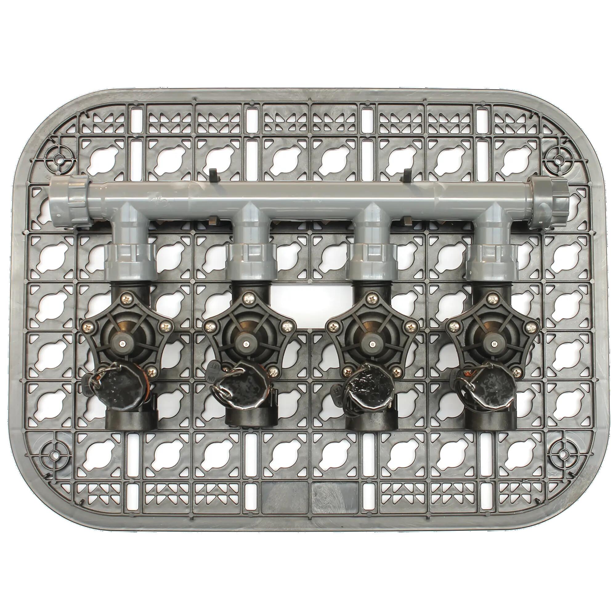 Kit 4 elettrovalvole RN150 pronte per l'isntallazione nel giardino. Materiale: PA 6 30% Fibra vetro - Membrana in parti costampate per una miglior tenuta in chiusura - Astina in acciaio autopulente - Molla della membrana in acciaio con azione progressiva - Apertura manuale - Parzializzatore di flusso - Solenoide certificato CE, IP 68 - Solenoide standard 9 VDC - Pressione min 1.0 bar max 12 bar - Portata min 20 l/min max 90 l/min - Temperatura min +4°C max 70°C - Assorbimento allo spunto 0,43 A (Sol. 24 VAC) - Assorbimento al mantenimento 0,21 A (Sol. 24 VAC). Per l'irrigazione di giardini (portate consigliate da 10 a 50 l/min) con 4 settori. Il parzializzatore consente di gestire al meglio il flusso d'acqua nell'elettrovalvola nei settori con basse portate (ad esempio ove presente ala gocciolante). Compatibile con tutte le centraline per irrigazione sul mercato a 24 VAC. La connessione maschio union (brevetto RAIN) consente una facile manutenzione del pozzetto