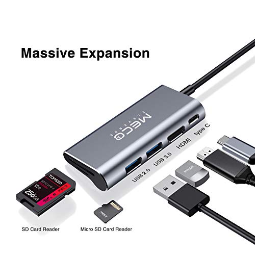 MECO ELEVERDE Hub USB C 6 in 1 con 1 Porta di Ricarica USB C, 1 Porte USB 3.0,1 Porte USB 2.0, HDMI 4K, Lettore di Schede SD/Micro SD, per Tipo C Dispositivi/MacBook/Google Chromebok/Samsung