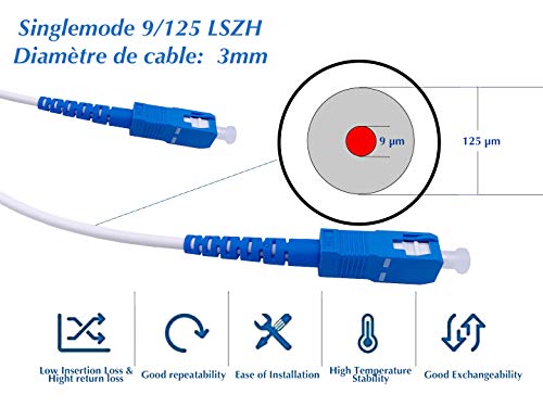 Elfcam - Cavo Fibra Ottica SC/UPC per SC/UPC Simplex Monomodale LSZH Bianco (5M)