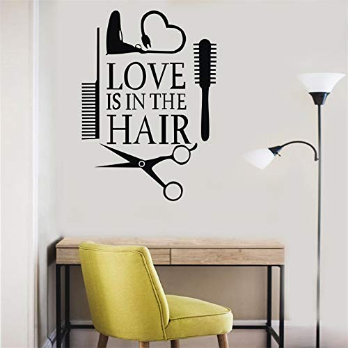 ELGDX Wall Sticker Love Is In the Hair Quote Vinyl Decal Barber Shop Professional Service Hair Cut Decor Removable Living Room Poster