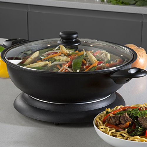 Elgento E14018N Wok elettrico antiaderente, 1400 Watt, nero