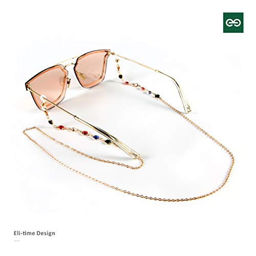 Eli-time Catene per occhiali da donna - Catene per occhiali da sole con perline di cristallo metallico/Supporti per occhiali/Cavi per occhiali con estremità in silicone antiscivolo (Multicolore)
