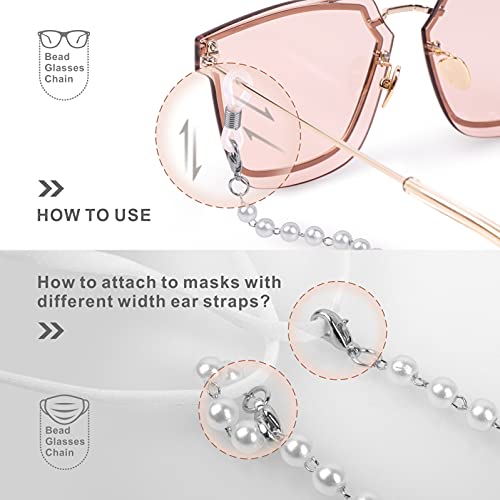 Eli-time Catenella Occhiali Donna Perles Acriliche Catena Cordini per Occhiali da sole/ Porta occhiali / Collana Carina / Porta maschera per Coppia Amico di Famiglia, Argento