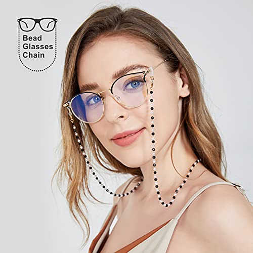 Eli-time Catenella Occhiali Donna Perline acriliche Catena Cordini per Occhiali da sole/ Porta occhiali / Collana Carina / Porta maschera per Coppia Amico di Famiglia, Bianco e nero