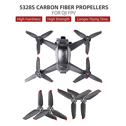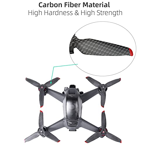 ★【Riduzione del rumore】Fibra di carbonio completa, peso leggero, basso rumore e perfetta compatibilità con DJI FPV Drone. Realizzato in fibra di carbonio ad alta resistenza e resistente, dopo il trattamento superficiale 3K, ha una forma aggiornata unica che può ridurre il rumore di volo del drone. L'uso di eliche in fibra di carbonio in combinazione con i droni FPV riduce il rumore complessivo di 4 Db, il che può ridurre la potenza del rumore del 65% ed estendere la durata a 40 minuti.