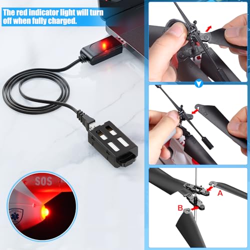 【Decollo e Atterraggio con un Solo Tasto】Gli elicotteri RC hanno una funzione di mantenimento dell'altitudine, ma la maggior parte degli altri non ce l'hanno. L'elicottero RC si libra dopo il decollo / atterraggio, potrebbe librarsi automaticamente a una certa altitudine, un pulsante di decollo / atterraggio, 4 pale del rotore, giroscopio a 3 assi e giroscopio lock-tail per rendere il volo più stabile. Con luci LED bianche, è facile volare al buio, facile da usare per bambini e principianti.