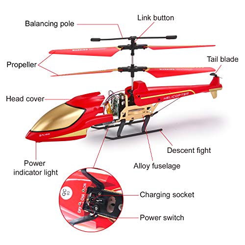 Elicottero Telecomandato Giocattolo per Bambini 3.5CH Raggi Infrarossi con Gyro & LED Semplice Maggiore Stabilità Super Resistente agli Urti, Rosso (Color 1)