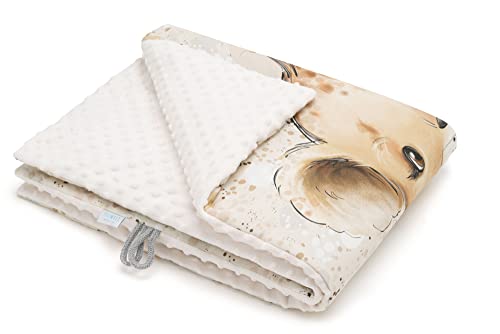 ELIMELI Coperta per gattonare, in cotone e pile Minky Polar con imbottitura, 75 x 100 cm (ecru - leone)