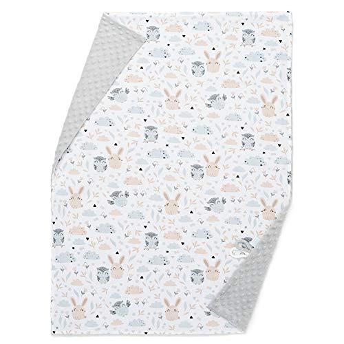 EliMeli Minky - Coperta per bambini, in tessuto Minky super morbido e cotone, per l'estate e la primavera, ideale come regalo (grigio - gufo e coniglio)