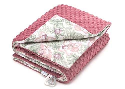 ELIMELI Minky - Coperta per gattonare, super morbida, in pile polare e cotone, con imbottitura, 75 x 100 cm, alta qualità (rosa - fiori)