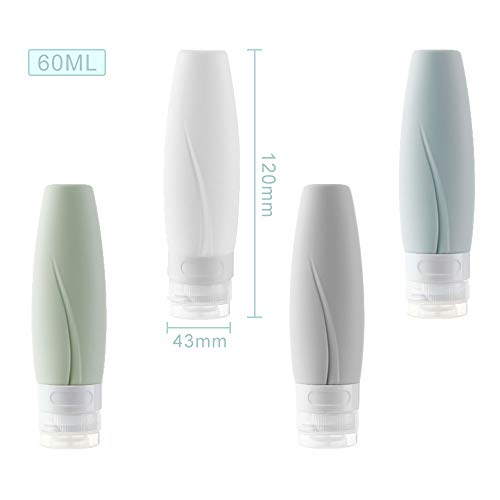 Elinala Bottiglie da Viaggio in Silicone, Contenitori da Viaggio, 4 Pezzi per Contenitore da Viaggio Portatile a Tenuta Stagna Ricaricabile e Comprimibile da Shampoo, Gel Doccia, Lozione (60 ML)
