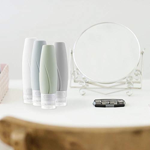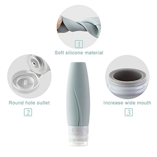 Piccolo e Leggero- 4 piccole bottiglie da viaggio in silicone per una facile conservazione e trasporto. Non è necessario richiedere il trasporto quando si prende il trasporto. Mettilo nello zaino, pronto per luso.