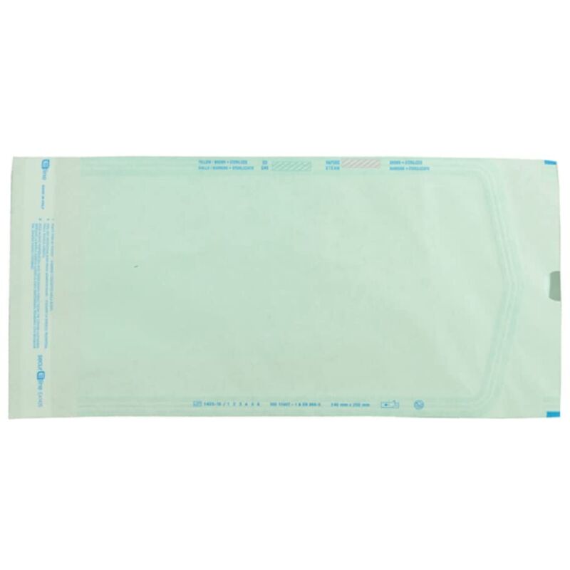 AUTOSALDANTI: pratiche e facili da utilizzare sono particolarmente adatte per i piccoli ambulatori, poiché garantiscono una protezione immediata senza l'impiego di termosigillatrici, sono certificati e costruiti secondo DIN 58953 BS 6871, EN 868-5, CN 13485, La pellicola trasparente è conforme allo standard tedesco EN 10/204, La carta medicale è conforme ai seguenti standard: DIN 58953 (Tedesco), Pharmacopea 589 (Francese), pr EN 868-3 (Europeo) e BS 6256 (Inglese). Sono composte da carta Kraft medicale e film plastico medicale colorato, La pellicola trasparente di poliestere-polietilene verde accoppiato a carta medicale permette la penetrazione del vapore e del gas durante la sterilizzazione, Gli indicatori di vapore e gas cambiano colore quando esposti alla sterilizzazione. La striscia biadesiva e la piega di chiusura facilitano le operazioni di chiusura manuale, Ottima pelabilità senza il rilascio di fibre della carta o lacerazione del film al momento dell'apertura della