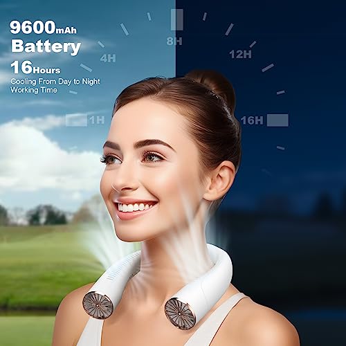 【Batteria da 9600 mAh】 Le ventole da collo ricaricabili sono dotate di una batteria da 9600 mAh, le ore di lavoro durano 16 ore, offrendoti freschezza dalla mattina alla sera.