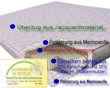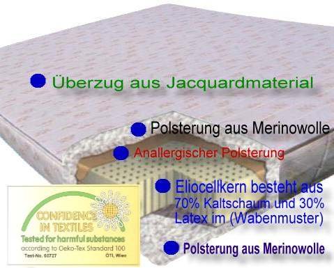 Materasso in schiuma fredda Eliocell, si compone di un nuovo materiale, elastico e estremamente resistente all' usura (schiuma comfort).