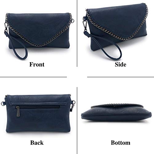 ELIOX - Pochette Donna Elegante con Catena e Tracolla in Morbida Pelle Sintetica - Borsa Clutch Piccola da Sera Borsetta Ragazza Borse Eleganti Cerimonia Matrimonio (Blu)