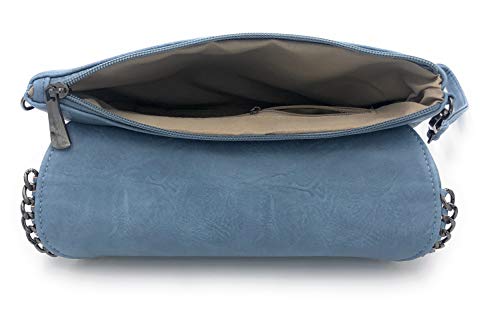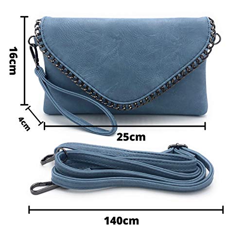 ELIOX - Pochette Donna Elegante con Catena e Tracolla in Morbida Pelle Sintetica - Borsa Clutch Piccola da Sera Borsetta Ragazza Borse Eleganti Cerimonia Matrimonio (Azzurro)