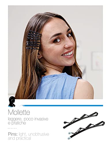 Set di accessori capelli ideali per lo styling dei CAPELLI FINI a volume ridotto. Busta in PVC nera serigrafata tono su tono con cerniera fucsia e cursore finale misure h.12cm x l 14cm x prof 7cm. 3 accessori capelli di cui 2 Fermacoda, 8 Mollette.