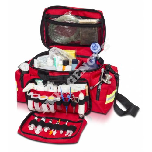 Pratica borsa di emergenza con due scomparti interni regolabili e una tasca per una facile organizzazione del materiale medico. Tre tasche esterne, due tasche laterali e una tasca nella parte anteriore, suddivisa all'interno e dotata di elastici. Chiusure ad alta resistenza. Materiale lavabile. Bande riflettenti giorno e notte. Manico e tracolla rinforzati. Dimensioni: 44 x 25 x 27 cm. Peso: 1,29 kg Colore: rosso. Il materiale medico non è incluso.