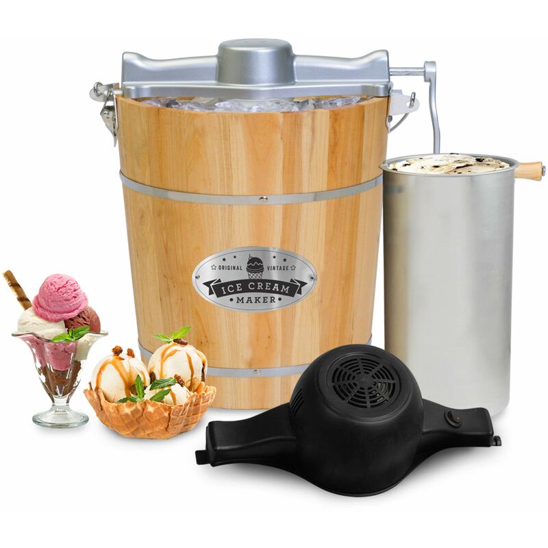 Il Elite Gourmet 4Qt. Il vecchio gelatiere elettrico prepara deliziosi gelati fatti in casa in pochi minuti. È dotato di un robusto contenitore in alluminio da 4 litri e di un potente motore da 90 giri/min, quindi la preparazione del gelato è veloce, comoda e divertente per tutta la famiglia! È ottimo per l'intrattenimento durante feste di famiglia, barbecue e picnic con tutte le tue ricette preferite per gelato, sorbetto, gelato e persino yogurt congelato. Il motore ruota una pagaia a sei pale che frusta l'aria negli ingredienti creando così un gelato morbido e liscio. La racchetta schiaccia rapidamente biscotti, frutta, gocce di cioccolato o una varietà di altri gustosi condimenti e li integra completamente nella miscela. Il vecchio secchio in legno di Appalachi contiene ghiaccio e salgemma e mantiene il contenitore alla temperatura ottimale di 10 °F. Per una facile pulizia, tutte le parti possono essere rimosse comodamente.