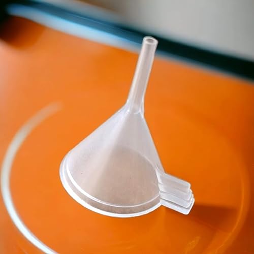 Si prega di leggere le misure: diametro interno della bocca 2,1 cm, altezza totale dell'imbuto 3,1 cm, diametro interno della punta 1,5 mm.