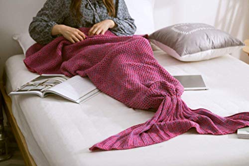 Elite99 Coperta a forma di coda di sirena, a maglia, per adulti e bambini, Cotone/cotone misto, Rose Red, 140CMx70CM