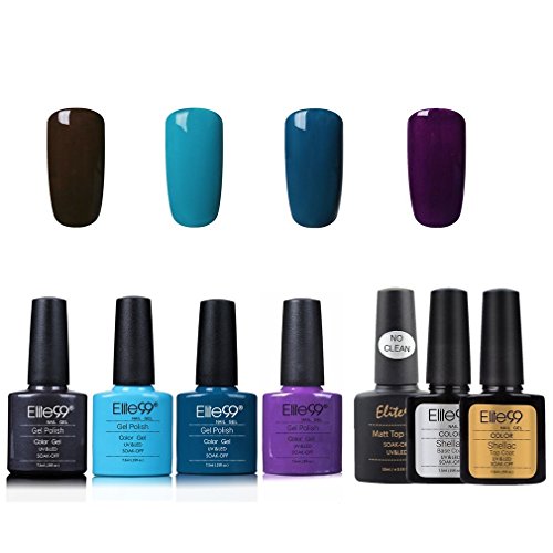 Elite99 Smalto Semipermente per Unghie in Gel UV LED 7pzs Colori con Base Coat Top Coat Lucido Top Coat Matte Kit per Manicure Smalti Gel per Unghie Soak Off - Set 011