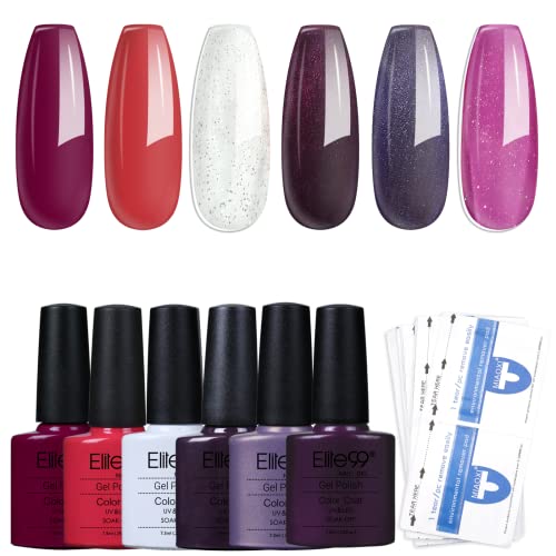 Elite99 6pz kit di smalti semipermanenti in gel con 10pz remover (solvente per unghie) come regalo. Può essere applicato nel salone di bellezza oa casa.
