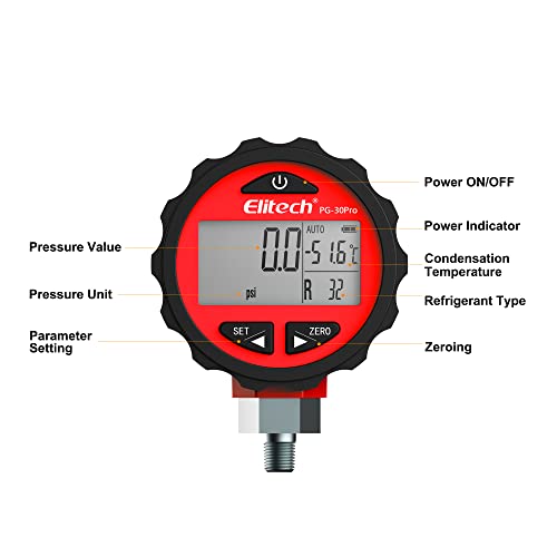 Elitech PG-30Pro manometro digitale rosso per 87 + liquidi refrigeranti con retroilluminazione 0-800 PSI 1/8 NPT (ROSSO) ✩12 mesi di garanzia✩