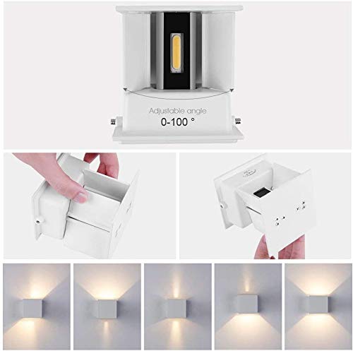 Elitlife - Lampada da parete per esterni, 12 W, luce LED bianca, per interni ed esterni, in alluminio, IP65, impermeabile, fascio luminoso regolabile su e giù, luce bianca calda