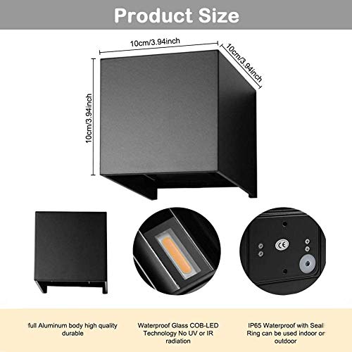 Elitlife 4 pezzi, lampada da parete a LED da 12 W, colore nero, per interni ed esterni, in alluminio, IP65, impermeabile, fascio di luce regolabile su e giù, illuminazione da parete, luce bianca calda