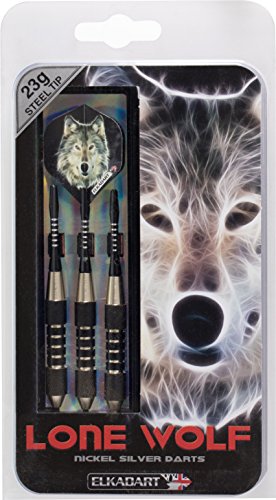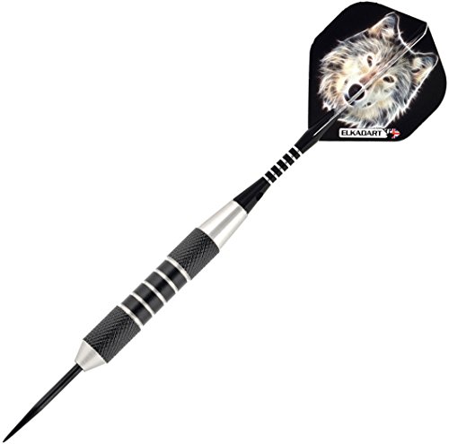 Elkadart Lone Wolf Freccette con Punta in Acciaio con Storage/Custodia da Viaggio, Lone Wolf Steel Tip Darts with Storage/Travel Case, 23 Grams, Grey