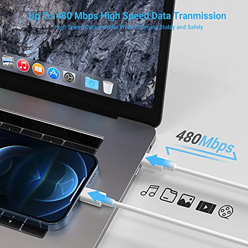 【Certificato MFi e protezione di sicurezza】 Il caricatore rapido iPhone Elktry è certificato MFi, quindi non comparirà il messaggio d'errore "non supportato" durante la ricarica. Inoltre, la funzione di sicurezza include la protezione da cortocircuito, da sovratensione e sbalzi di corrente. Il caricabatterie non si surriscalderà grazie al chipset Weltrend integrato. Il cavo Lightning supporta una velocità di trasferimento dati di 480 Mbps e può trasferire file tra iPhone e MacBook.