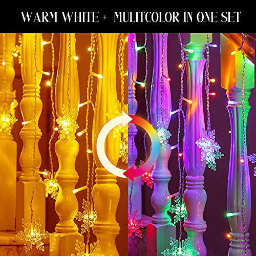 ELKTRY Luci Natale Esterno Cascata, 10M 400LED Tenda Luminosa con Telecomando, 9 Modalità Luci Natale Colorate, Catena Luminosa Impermeabili per Natale Feste Finestra Patio Giardino, Fiocco di Neve