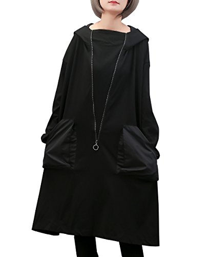 Ellazhu Donne Moda Maniche Lunghe con Tasche Patchwork Nero Lacoste Baggy Hoodie Dress GY1431 A