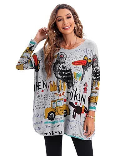 Design: questo maglione oversize da donna vanta maniche lunghe, girocollo e una stampa grafica unica. Ha una vestibilità rilassata che fornisce un aspetto spensierato se abbinato a pantaloni diversi.