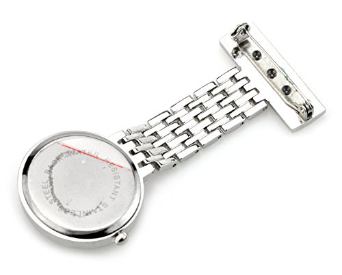 Ellemka JCM-2107 - Orologio da Infermiera FOB Clip alla Moda Quarzo Analogico Para-Medico Tasca Spilla Metallo Lancette e Numeri Retroilluminate - Color Argento