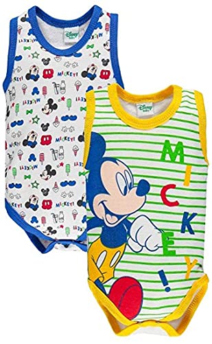 Ellepi Body Neonato Senza Maniche Topolino Mickey Mouse Costine Set 2 Pz AF5044 (Giallo/Blu, 6 Mesi)