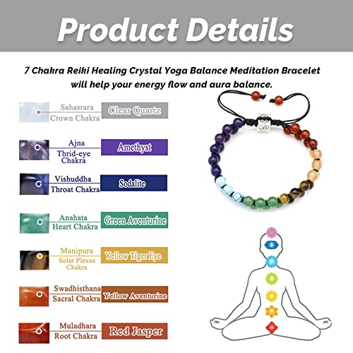 7 chakra: il braccialetto Chakra è stato progettato per bilanciare i sette chakra che sono centri energetici. Ogni pietra rappresenta il chakra di base, il chakra sacrale, il chakra del plesso solare, il chakra del cuore, il chakra della gola, il chakra del terzo occhio e il chakra della scaglia.