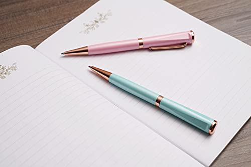 Elmina - Set di penne a sfera da donna, colore oro rosa, inchiostro nero