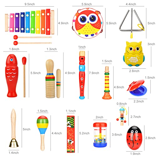 Elover Strumenti Musicali per Bambini Set Ritmo Percussioni Giocattolos in Legno Xilofoni Tamburi e Percussioni Giochi Musicali per Bambini