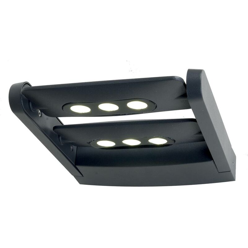 Sigmun lampada a parete 6xled Scheda H: 3,5 L: 25 B: 21 con sensore Dimensioni in mm: Altezza: 35, larghezza: 210, profondità: 250, Peso in kg: 1670 Tipo di agente luminato/versione: Scheda LED Prestazioni massime in Watt: 18 Dimmabile: No Sensore: Sì Classe di protezione: ip65 materiale per l'alloggio: Cast Alluminum Colore: Grafite