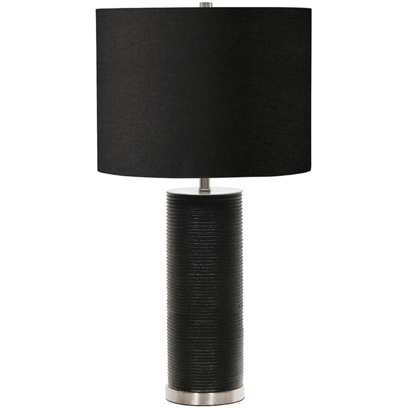 Collezione Ripple DETTAGLI PREGIATI Lampada da tavolo a 1 luce - Nero. Lampada da tavolo in resina nera con dettagli in nichel lucido. Include un paralume rigido in finto lino nero.