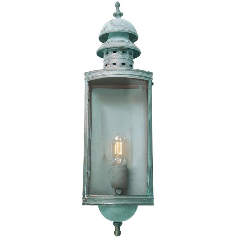 Lampada da parete Downing Street 1xe27 H: 60 L: 13 B: 17.5 IP44 Dimensioni in mm: Altezza: 600, larghezza: 175, profondità: 130, Peso in kg: 3190 Lampade contengono: no Tipo di agente luminato/versione: e27 Prestazioni massime in watt: 100 Dimmbar: no Classe di protezione: IP44 Materiale per la casa: realizzato in ottone solido, vetro Colore: Grünspan