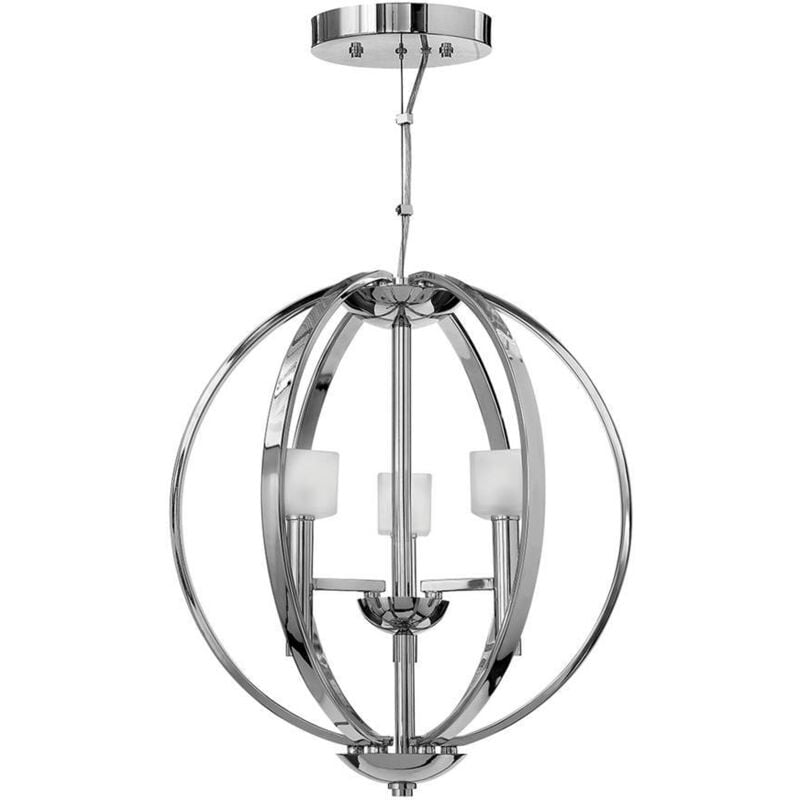Collezione Mondo LAMPADA DALLA FINITURA BRILLANTE Lampadario a 3 luci. Le audaci estensioni dei bracci di Mondo, in una brillante finitura cromata lucida, sono completate dai piccoli vetri smerigliati a forma di cubo, che aggiungono raffinatezza a questa collezione contemporanea.