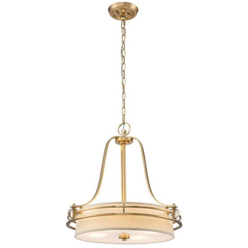 Elstead Quoizel Gotham Plafoniera Cilindrica a Sospensione in Ottone Spazzolato | Finitura: ottone spazzolato | Materiale: acciaio, vetro, paralume crema | Altezza: 61 cm | Altezza minima: 69,9 cm | Altezza massima: 191,8 cm | Larghezza: 58,4 cm | Profondità: 58,4 cm | Diametro: 58,4 cm | Tipo di lampada: E27 | N. di lampade: 4 | Lampadina inclusa: No | Potenza (massima): 100 W